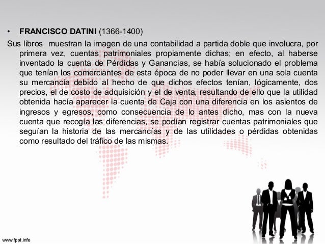 Fray Luca PacioIi, nacido en Borgo San Sepolcro, Toscana, hacia 1345, sin haber sido contador trabajó como catedrático en las universidades de Roma, Padua, Florencia y Asís, y redactó con gran maestría un tratado de contabilidad, en el cual sostiene que para su aplicación se requiere el conocimiento matemático.